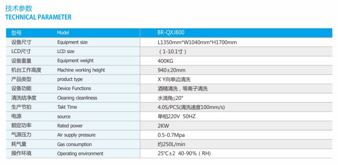 机器功能: 适用于TN/STN、TFT LCD、OLED 等端子的自动清洁。可按客户要求,与松下FPX102全自动COG或FOG设备自动接驳,以节省人力降低成本,设备采用等离子清洗,满足不同产品 制程工艺要求。 机器特点: 适用于TN/SNT,TFTLCD,OLED等多边端子自动清洗,LCD酒精清洗前视觉校正,保证清洗精度。 采用蠕动泵供给酒精,清洗夹头上下同时供给清洗平台装有滑台气缸固定LCD,防止擦拭过程中LCD偏位。 可按客户要求,与绑定机COG自动接驳,清洗平台可旋转90度。