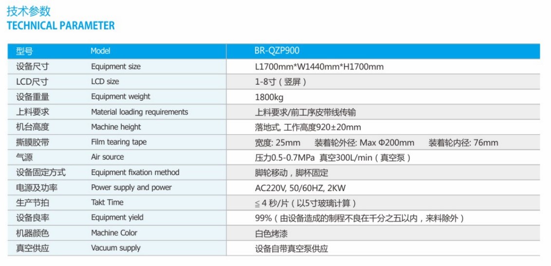 机器功能: 本设备为FOG与BLU自动组装机,适用于人工放置FOG与BLU,满足设备完成FOG与BLU自动撕膜、自动视觉对位、自动组装、自动下料等工艺全制程。上料分三种方式可选:1、FOG和BLU均为人工上料 2、FOG人工上料,BLU自动上料 3、BLU/FOG自动上料。 机器特点: 1、设备配置自动撕膜、CCD视觉捕捉校正、CCD与BL自动组装及成品自动下料功能。 2、兼容水滴、刘海、圆屏、盲孔屏组装工艺。